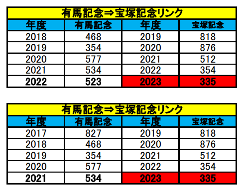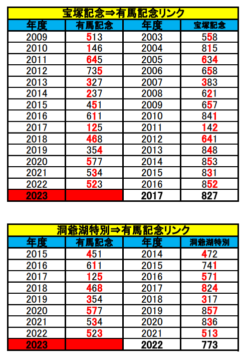 宝塚記念から有馬記念、洞爺湖特別から有馬記念のリンクと有馬記念から宝塚記念のシンクロ相互リンクになります。有馬記念と宝塚記念はドリームレース、洞爺湖特別と有馬記念は、温泉レースになります。